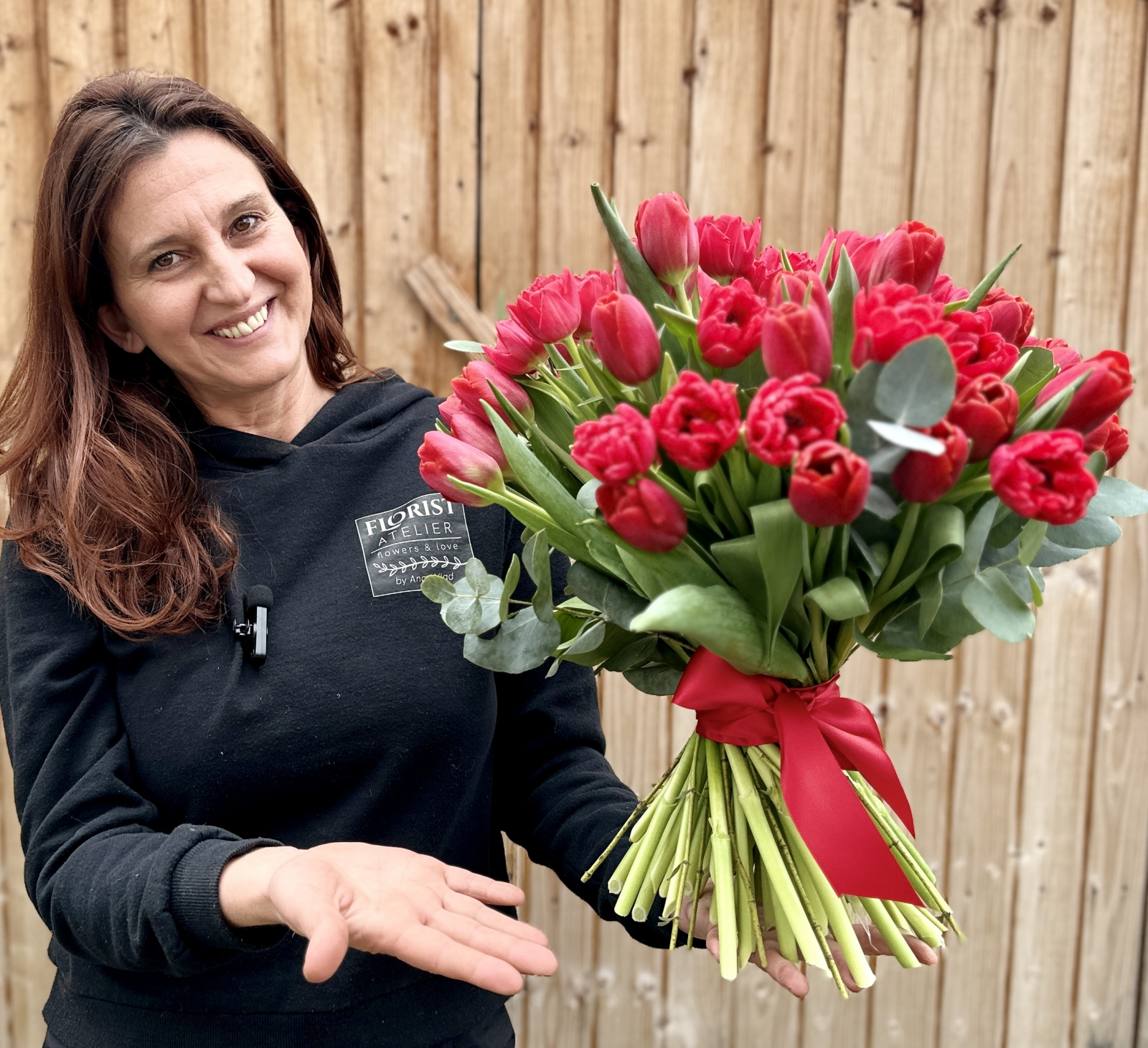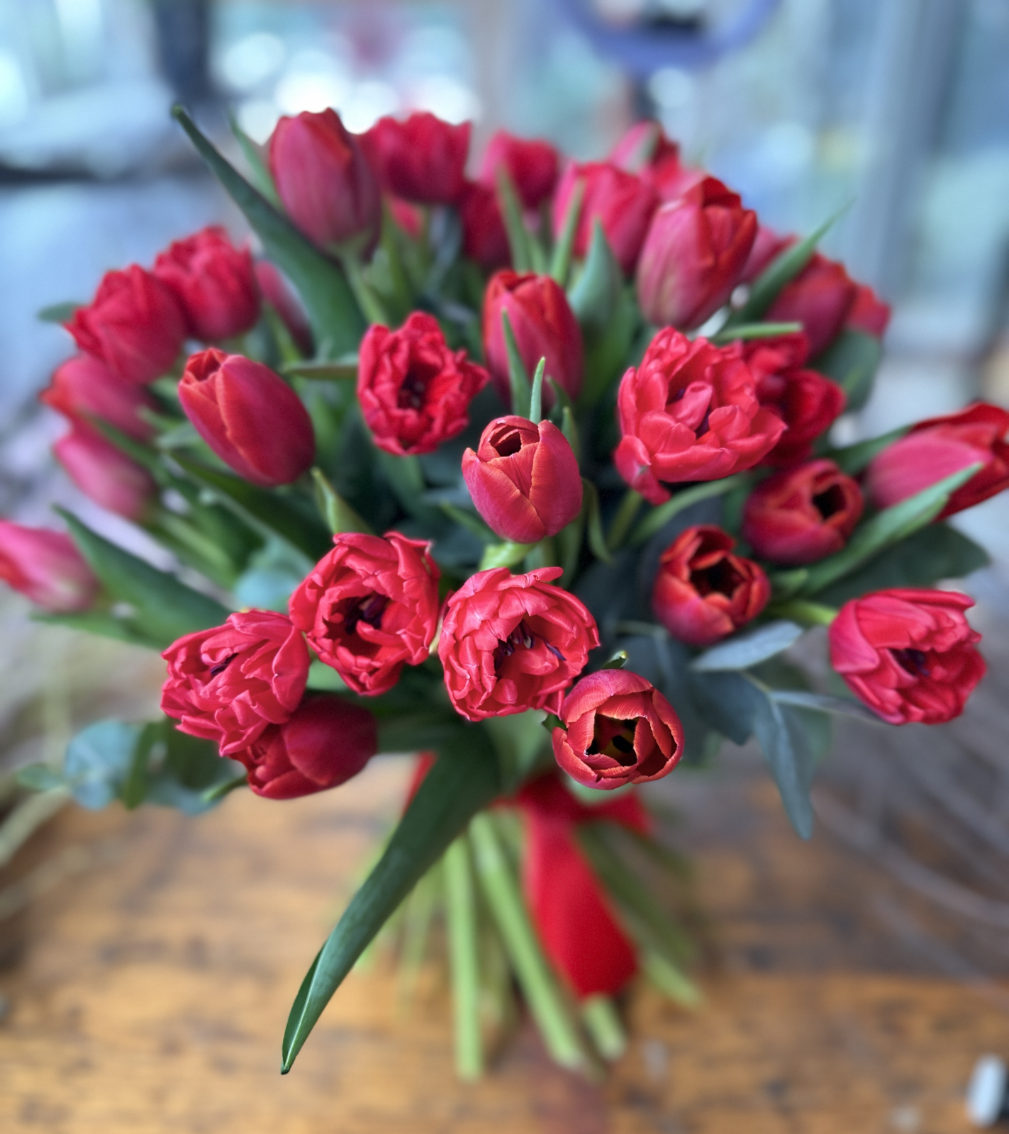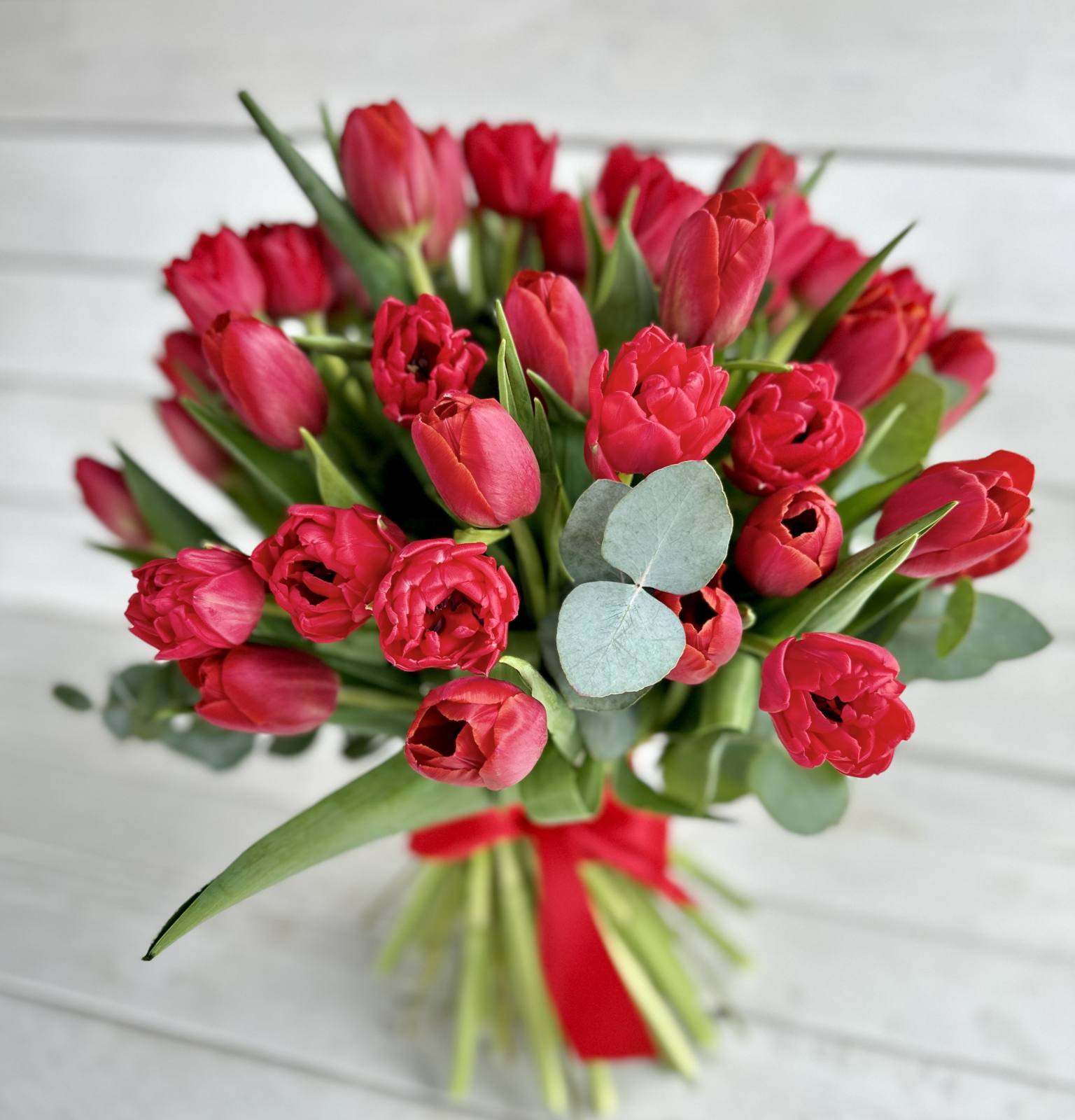 Buchet 51 lalele rosii. Simplu, elegant, impresionant.